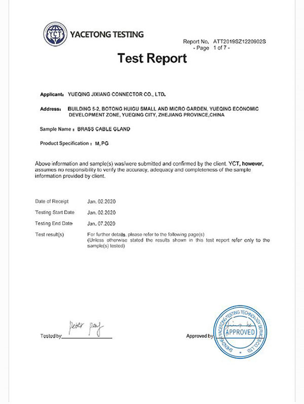黃銅電纜接頭測(cè)試報(bào)告
